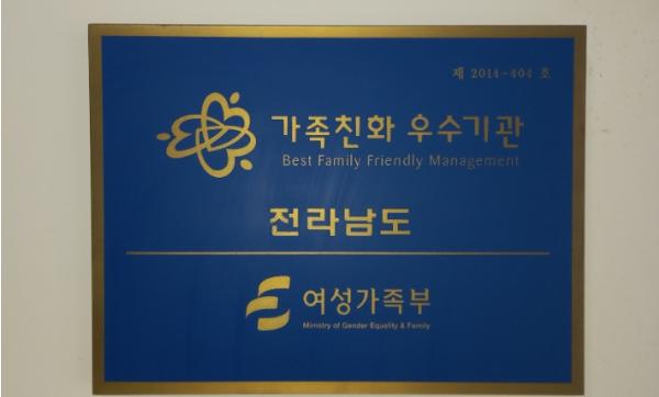 이는 직장과 가정생활의 조화·균형을 위해 추진해온 전남도의 다양한 노력이 공식적으로 인정받은 결과다.