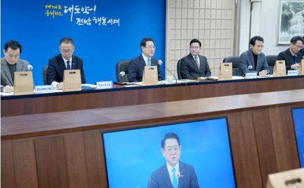 김영록 지사는 이날 오전 도청 서재필실에서 2025년 마지막 실국 정책회의를 열어 “정부가 통합에 과감한 인센티브를 주겠다고 하므로, 여건이 되면 특별자치도가 아니고 바로 대통합으로 갈 수도 있을 것”이라며 새해 화두로 AI·에너지 시대 광주·전남 대부흥을 위한 행정통합을 제시했다.
