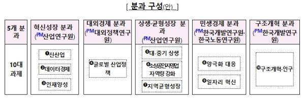 오늘 회의에서는 경인사연 소속 연구기관들이 집중 연구할 경제 대도약 10대 과제를 선별해 5개 분과로 편성하고 분과별 주관 연구기관(PM)을 지정했다. 아울러 연구 성과가 실제 정책으로 이어질 수 있도록 기재부를 중심으로 관계부처가 분과별 논의에 적극 참여해 연구기관들과 의견을 교환하도록 할 계획이다.