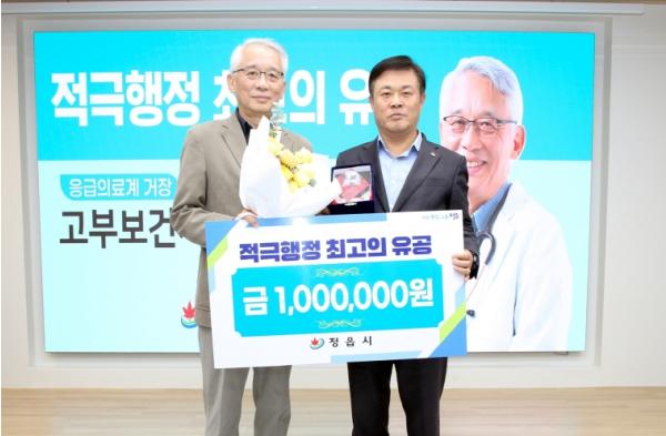 이러한 공로를 인정받아 시는 임경수 고부보건지소장을 ‘2025년 정읍시를 빛낸 최고의 적극행정 유공공무원’으로 선정하고 포상금 100만원을 지급했다. 임 지소장은 “포상은 개인에게 주어졌지만 성과는 시민과 현장이 함께 만든 것”이라며 포상금 전액을 이웃돕기 성금으로 선뜻 기탁해 주위의 귀감이 됐다.