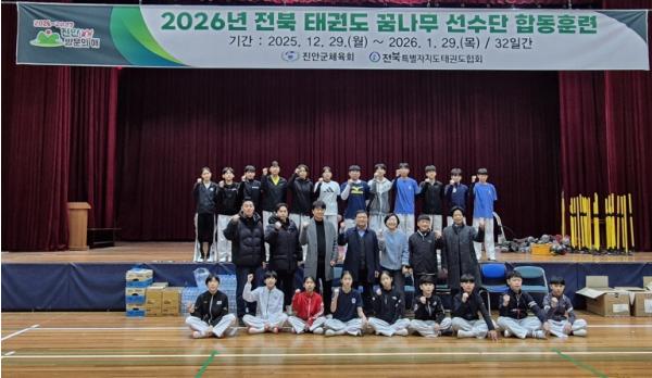 [중앙뉴스라인, 김용범기자] 진안군은 지난 12월 29일부터 내년 1월 29일까지 32일간 전북특별자치도 태권도 꿈나무 선수단 및 합동훈련팀 212명이 진안 문예체육회관에서 전지훈련에 돌입했다고 밝혔다.