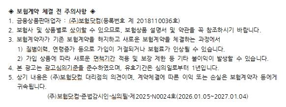 참고로 병력을 가지고 있는 사람이라면 유병자보험 상품을 고려해 볼 수 있다. 유병자보험은 간편심사보험이라 칭하는데, 유병력자에 대한 가입조건이 보다 완화된 상품인 만큼 유병자라면 검토해 보는 것이 권장된다. 단, 가입 시 고지의무 준수는 필수적이므로 추후에 불이익이 발생하지 않도록 주의를 기울여야 한다.