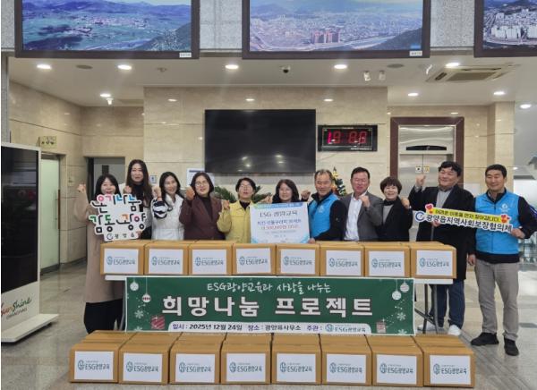 ESG광양교육, 광양읍에 후원품 기탁... 연말 취약계층 온기 나눔