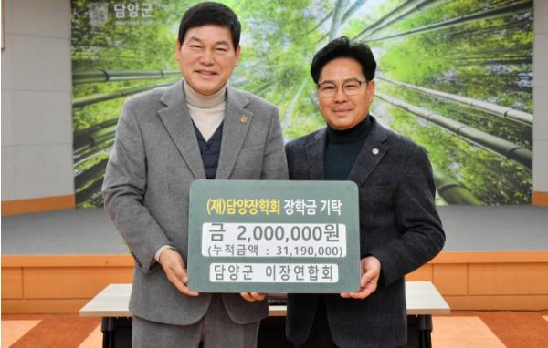 (재)담양장학회는 지난 6일 담양군 이장연합회(회장 정용오)에서 지역인재 육성을 위한 장학금 200만 원을 기탁했다고 밝혔다.
