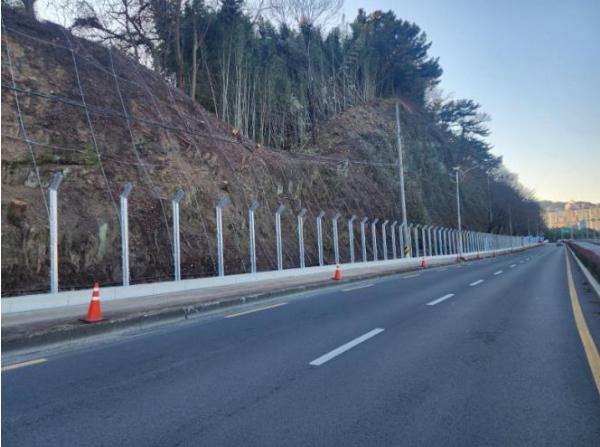 이번 사업은 지난해 8월 착공해 새벼리 도로에 암반 사면의 낙석 위험과 시설물 노후에 따른 안전사고의 위험을 사전 예방하고 도로 이용자의 안전을 강화하기 위해 추진됐다.