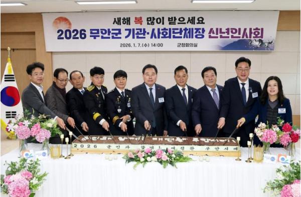 [중앙뉴스라인, 이상권기자] 무안군은 2026년 병오년 새해를 맞아 지난 7일 오후 2시 군청 3층 회의실에서 기관·사회단체장 신년인사회를 개최했다.