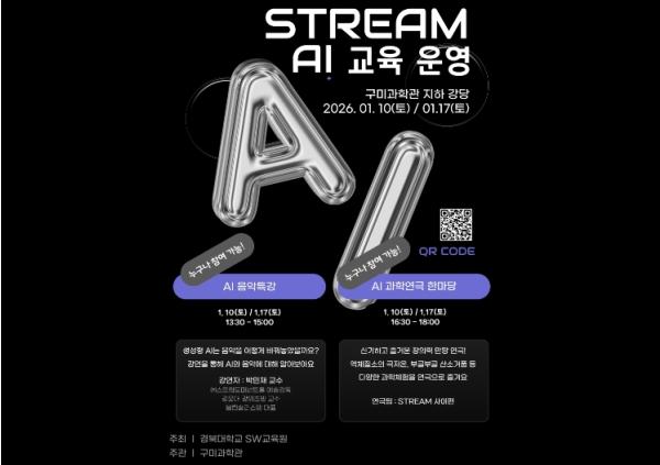 [중앙뉴스라인, 한장원기자] 구미과학관에서는 경북대학교 SW교육원과 함께 겨울방학을 맞이하여 1월 10일, 1월 17일 양일간 “STREAM AI 교육”을 운영한다.