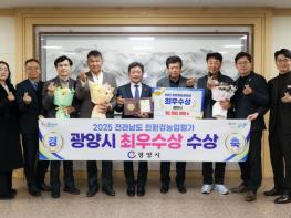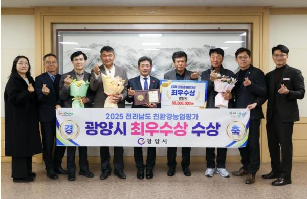 [중앙뉴스라인, 전은희기자] 광양시는 전라남도 주관 ‘2025년도 친환경농업대상’ 평가에서 벼 이외 과수·채소 등 품목 다양화와 저탄소 농산물 인증 면적 대폭 증가 등 우수한 성과를 인정받아 최우수상을 수상했다고 밝혔다.