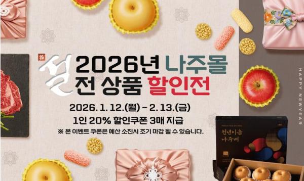 나주시 관계자는 “설 명절을 맞아 시민과 소비자들이 부담 없이 우수한 나주 농특산물을 만나볼 수 있도록 할인 폭과 혜택을 강화했다”며 “2026년 나주 방문의 해를 계기로 앞으로도 다양한 기획전을 통해 나주몰 이용 만족도를 높여가겠다”고 말했다.