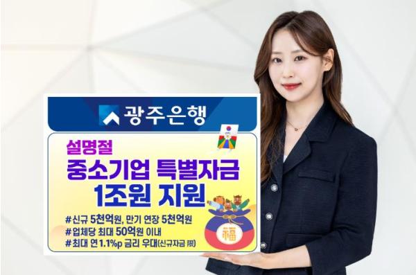 [중앙뉴스라인, 양병남기자] 광주은행은 설 명절을 앞두고 자금 운용에 어려움을 겪는 지역 중소기업 및 소상공인을 위해, 1월 15일부터 2월 27일까지 총 1조 원 규모의 ‘2026년 설 명절 중소기업 특별자금’을 지원한다고 밝혔다.
