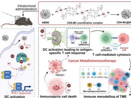 생분해성 실리카 나노입자는 종양 미세환경 내에서 서서히 분해되어 망간과 CDN을 방출하고, 방출된 망간과 CDN은 면역원성 암세포 사멸을 일으킴과 동시에 수지상세포의 STING 경로를 강하게 자극하여 T 세포의 활성을 유발하는 in situ 항암백신 효과를 나타냈다.