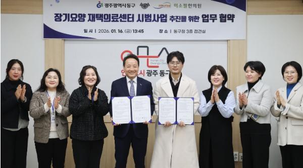 [중앙뉴스라인, 한소연기자] 광주 동구는 16일 미소필한의원(원장 박태희)과 주민 건강증진 및 의료서비스 접근성 강화를 위한 ‘협업형 장기요양 재택의료센터 시범사업’ 추진 업무협약을 체결했다고 밝혔다.