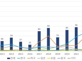 같은 기간 연평균 증가율도 한국이 18.7%로 가장 높았고, 그 다음은 중국(14.7%)과 미국(12.5%)이었으며, 유럽연합(5.8%)과 일본(-19.8%)은 주요국의 연평균 증가율 9.5%보다 매우 낮거나 감소세를 보였다.