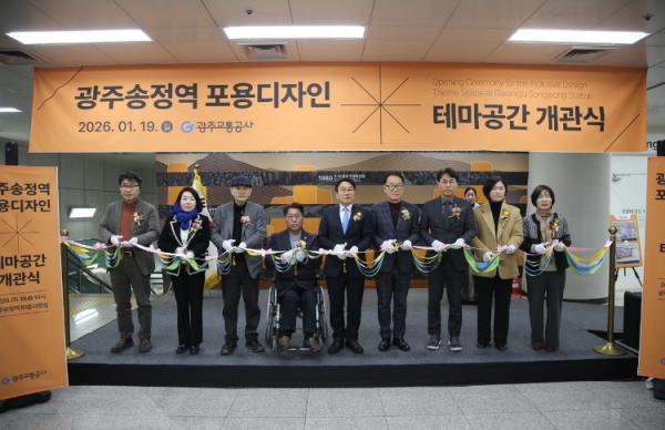 광주교통공사(사장 문석환)는 19일 광산구 광주송정역에서 ‘포용 디자인(Inclusive Design)’을 적용한 광주송정역 테마 공간 개관식을 개최했다.