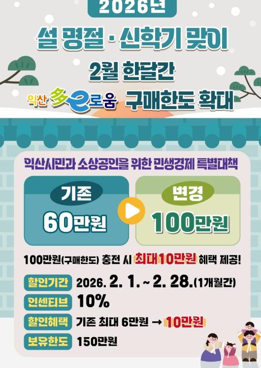 이번 혜택은 설 명절과 신학기 준비로 가중되는 장바구니 부담을 덜고, 지역 골목 경제에 활기를 불어넣기 위해 마련됐다.