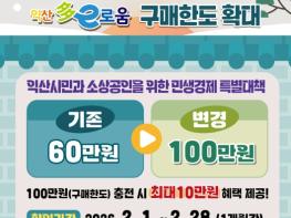 익산시는 2월 한 달 동안 다이로움 구매 한도를 기존 60만 원에서 100만 원으로 상향한다고 20일 밝혔다.