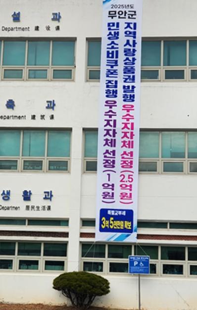 [중앙뉴스라인, 이상권기자] 무안군은 행정안전부가 주관한 2025년 지역사랑상품권 발행, 민생회복 소비쿠폰 집행, 지방물가 안정관리 평가에서 우수지자체로 선정돼 특별교부세 3억7천만 원을 확보했다고 밝혔다.