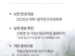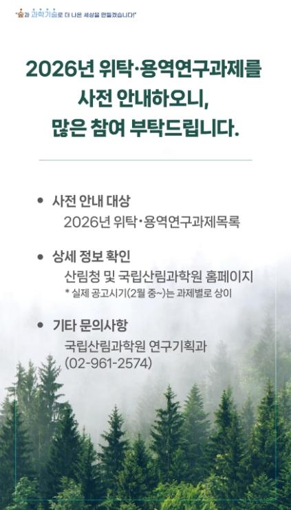 산림청 국립산림과학원, 2026년 위탁˙용역연구과제 사전 안내