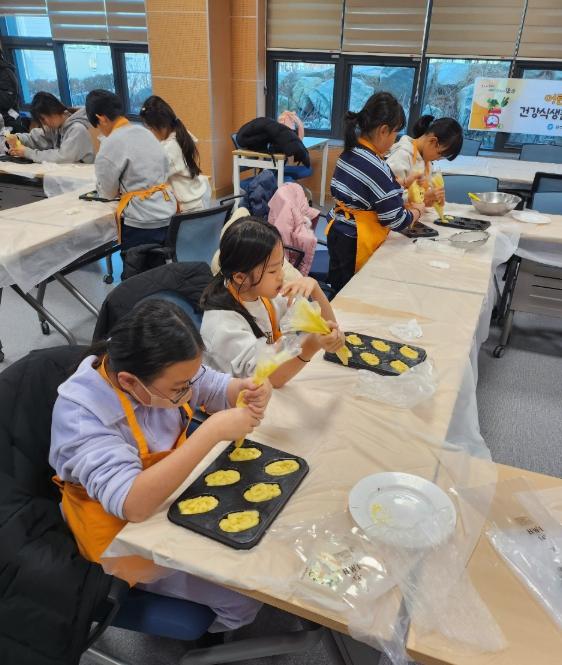 전문 강사가 마들렌 만들기 전 과정을 지원했으며, 영양교육 이론에서는 겨울철 균형 잡힌 식단의 중요성과 건강한 간식 선택 방법 등을 중심으로 교육이 이뤄졌다.