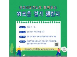 [중앙뉴스라인, 한소연기자] 군산시보건소가 모바일 걷기 앱 ‘워크온(WalkOn)’을 활용한 월별 걷기 챌린지를 2월부터 12월까지 운영할 예정이라고 밝혔다.