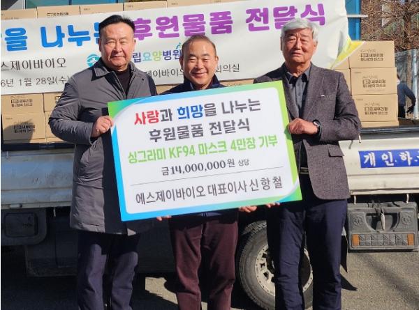 ㈜에스제이바이오, 무주군립요양병원에 '싱그라미 마스크' 4만 장 기부