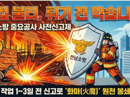 주영국 전남소방본부장은 "사전신고제는 공사 현장과 119를 하나로 연결하는 가장 확실한 안전 고리"라며 "단순한 행정 절차가 아니라 내 사업장의 안전을 지키는 필수 과정이라는 인식을 갖고 적극 동참해 주시길 바란다"고 당부했다.