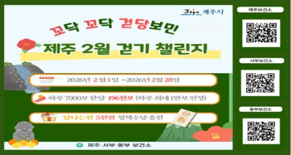 한편, 이번 사업은 제주시가 2026년 주민참여예산 4억 원을 확보해 추진하는 건강생활실천 프로그램으로, 3개 보건소(제주·서부·동부보건소)가 함께 참여해 시민 주도의 걷기 실천을 지속적으로 확산하는 데 목적이 있다.