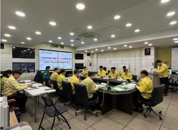 [중앙뉴스라인, 한소연기자] 고창군이 2일 군청 재난안전상황실에서 김영식 부군수 주재로 행정안전부, 전북특별자치도와 함께 재난안전대책본부 회의를 열고, 아프리카돼지열병(ASF) 확산 방지를 위한 방역관리 상황을 점검했다.