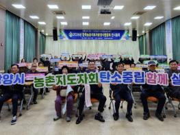 특히 회원들은 탄소중립 농업 실천 의지를 다지는 퍼포먼스와 단체사진 촬영을 통해, 농촌지도자회가 지속가능한 농업 실현과 환경 보전에 앞장설 것을 함께 다짐했다.