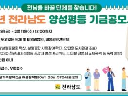 [중앙뉴스라인, 전은희기자] 전라남도가 양성평등 문화 확산과 여성의 사회참여·권익 확대를 위해 오는 11일까지 ‘2026 양성평등기금 공모사업’을 접수한다.