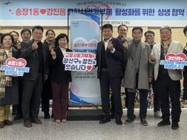 송정1동 대회의실에서 열린 이날 협약식에는 임창복 읍장을 비롯한 이현교 강진읍 주민자치회장과 박희영 동장, 기영철 송정1동 주민자치회장 등 20여 명의 양 지자체 관계자들이 참석해 지역 상생과 나눔의 가치를 실천하는 뜻깊은 시간을 가졌다.