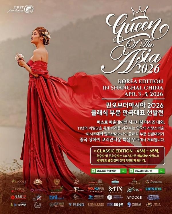 [중앙뉴스라인, 한성영기자] 비영리문화예술단체 퍼스트파운데이션이 주관하는 시그니처 미시즈 대회 ‘미시즈 퍼스트 퀸오브더아시아(Queen of the Asia)’ 2026 정규 에디션이 한국 예심을 거쳐 필리핀과 중국에서 이원화된 본선을 진행할 예정인 가운데, 대회의 개최 취지와 방향성에 대한 관심이 높아지고 있다.