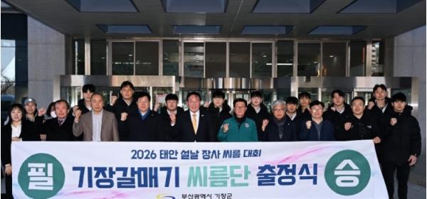 [중앙뉴스라인, 우제헌기자] 기장군은 12일 기장갈매기 씨름단의 역사적인 첫 출정식을 개최하고 ‘2026 태안설날장사씨름대회’에 참가하기 위해 출발하는 선수단을 뜨겁게 격려했다고 밝혔다.
