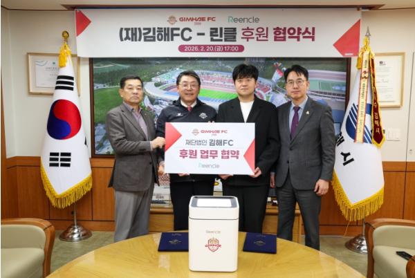 [중앙뉴스라인, 우제헌기자] 재단법인 김해FC가 지역 내 혁신 기업과의 파트너십을 통해 구단 경쟁력 강화와 지역 상생이라는 두 마리 토끼 잡기에 나섰다. 김해FC는 20일, 가정용 음식물처리기 전문 브랜드인 ‘린클(Reencle)’과 공식 후원 협약을 체결했다고 밝혔다. 이번 협약은 김해FC의 중장기 발전 5대 전략 중 하나인 브랜드 협력 프로젝트의 핵심 사업, ‘아이언 유니티 네트워크(Iron Unity Network)’ 구축의 일환으로 성사됐다.