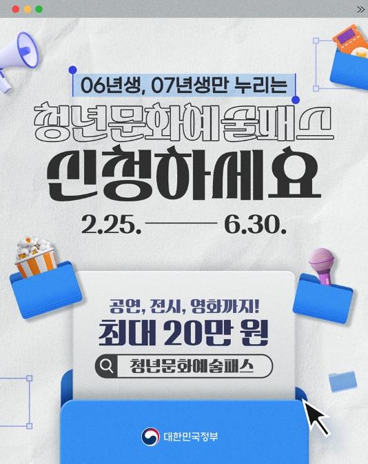문화체육관광부, 19~20세 청년, '청년문화예술패스' 신청하세요