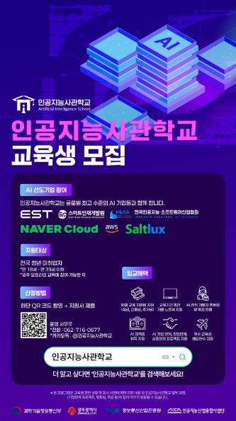 광주인공지능사관학교는 광주시와 과학기술정보통신부, 정보통신산업진흥원, 인공지능산업융합사업단이 지원하는 인공지능 전문인력 양성기관이다. 2020년 개교 이후 5년간 총 1528명의 전문 인력을 배출했으며, 최근 3~5기 수료생의 취·창업률은 76%를 기록하는 등 성과를 이어가고 있다.