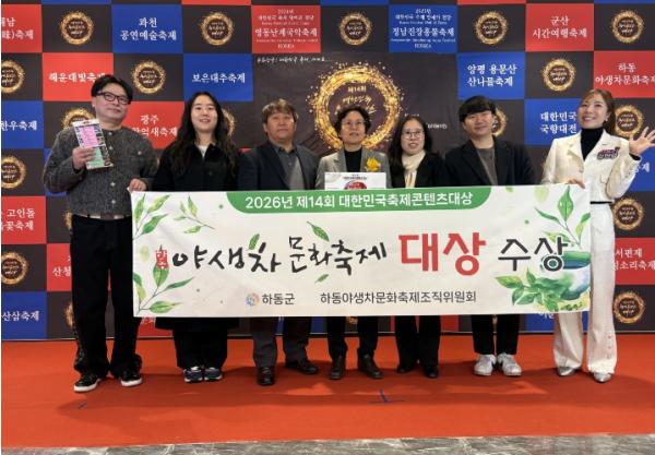 [중앙뉴스라인, 우제헌기자] 하동야생차문화축제가 지난 24일 서울에서 열린 ‘2026 제14회 대한민국축제콘텐츠대상’에서 축제 경제 부문 대상을 거머쥐며 하동군의 위상을 드높였다.