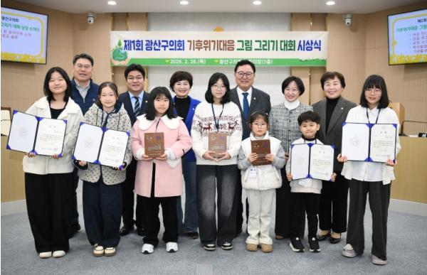 한편, 최우수상·우수상·장려상 등 우수작 3점은 2월 25일부터 3월 27일까지 광산구의회 2층 갤러리에 전시되며, 광산구의회는 이를 통해 미래 세대가 전하는 기후위기 대응 메시지를 지역사회와 공유하고 주민 공감대를 확산해 나갈 계획이다.