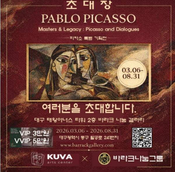 [중앙뉴스라인, 한성영기자] 한 도시의 전시장이 한 시대의 미술사를 온전히 담아내는 일은 결코 가벼운 과제가 아니다. 2026년 3월 6일부터 8월 31일까지 대구 동구 봉무동 바라크나눔갤러리에서 열리는 피카소 인 대구 피카소와 전설의 거장들 특별전은 이러한 학술적 무게를 정면으로 다루며 지역 문화계에 새로운 이정표를 제시한다. 이번 전시는 단순히 세계적 명화를 나열하여 선보이는 단발성 행사를 넘어 20세기 미술이 형성해온 사유의 구조를 하나의 정교한 큐레이토리얼 맥락 안에서 재구성하려는 기획이다.