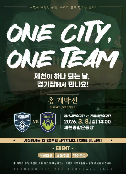 [중앙뉴스라인, 우제헌기자] 제천시민축구단이 오는 3월 8일 오후 2시, 제천종합운동장에서 역사적인 홈 개막전을 연다.