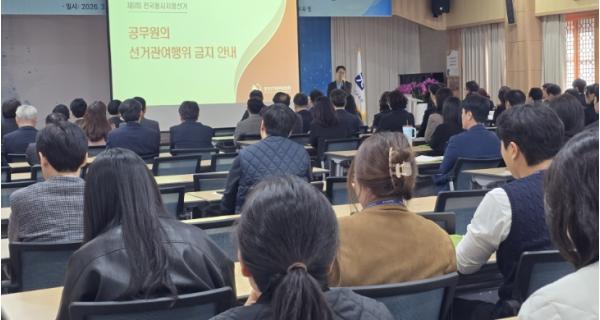 이번 교육은 제9회 전국동시지방선거를 앞두고 공무원의 정치적 중립 의무를 되새기고 업무 추진 과정에서 발생할 수 있는 위법 행위를 사전에 예방하기 위해 마련됐다.