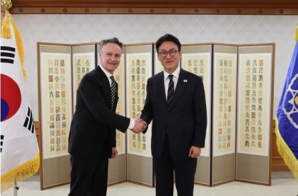 [중앙뉴스라인, 우제헌기자] 김민석 국무총리는 3월 9일 오전 정부서울청사에서 패트릭 존슨(Patrik Jonsson) 인터내셔널사업 총괄 대표 등 일라이릴리앤컴퍼니 관계자와 면담을 가졌다.