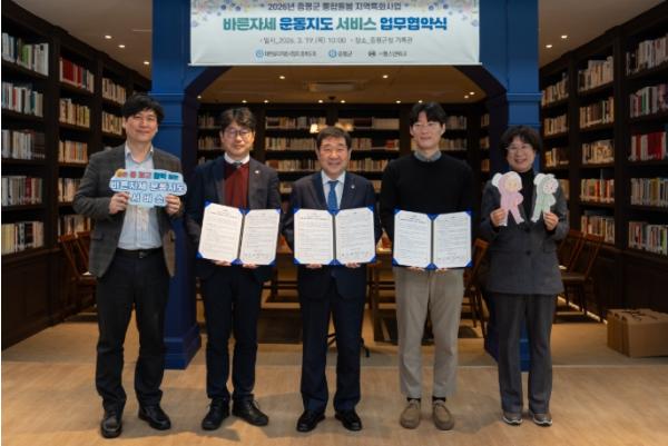 [중앙뉴스라인, 한장원기자] 충북 증평군은 19일 군청 기록관에서 대한물리치료사협회 충북도회(회장 정강훈), ㈜헬스앤워크(대표 강철진)와 통합돌봄 지역특화사업 ‘바른자세 운동지도 서비스’ 추진을 위한 업무협약을 체결했다.