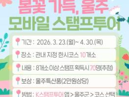 올해 새롭게 리뉴얼된 K스탬프투어 모바일 앱을 이용한 ‘봄꽃 가득, 울주’ 이벤트와 ‘울주와봄’ SNS 여행후기 인증 이벤트 등으로 구성됐다.