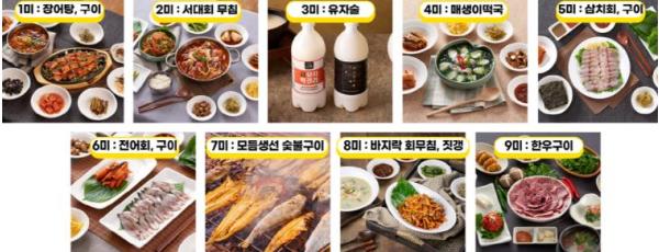 1미 장어탕·구이는 청정 남해 고흥 해역에서 자란 붕장어는 단백질, 비타민 A, 오메가-3가 풍부해 피로 회복과 면역력 강화에 도움을 주며, 탕·구이·회 등 다양한 요리로 즐길 수 있다.