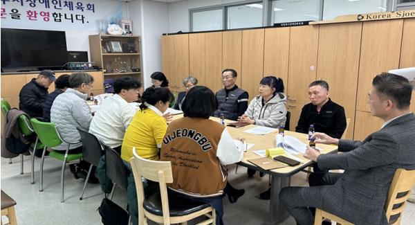 이번 회의에서 ▲종목별 예산 편성 안내 ▲대회 전반적인 추진 사항 안내 ▲기타 토의 등으로 1시간 동안 회의를 진행했으며, 작년 제15회 경기도장애인체육대회 2025 가평 대회에서 예산 집행에 부족했던 권고사항을 안내 및 설명하여 보조금 집행에 있어 투명하게 사용될 수 있도록 더욱 심혈을 기울였다.