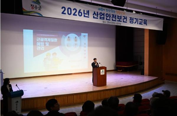 [중앙뉴스라인, 김용범기자] 장수군은 지난18일 한누리전당 소공연장에서 군 소속 현업 근로자 300여 명을 대상으로 2026년 1분기 산업안전·보건 근로자 정기교육을 실시했다고 밝혔다.