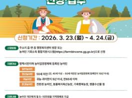 [중앙뉴스라인, 김영환기자] 평택시는 3월 23일부터 4월 24일까지 녪년 농어민 기회소득’1차 신청을 접수 중이라고 밝혔다.