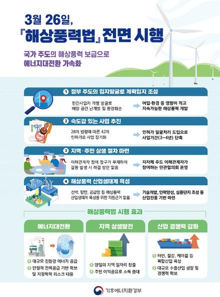기후에너지환경부, 3월 26일, 「해상풍력법」 전면 시행