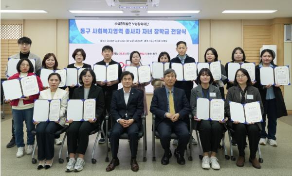 동구 관계자는 “지역사회 최일선에서 헌신하는 사회복지 종사자들의 노고에 깊이 감사드린다”며 “이번 장학금이 자녀들의 학업 부담을 덜고 안정적인 교육환경 조성에 도움이 되길 바라며, 지역사회 나눔 문화 확산에도 의미 있는 계기가 되길 기대한다”고 밝혔다.
